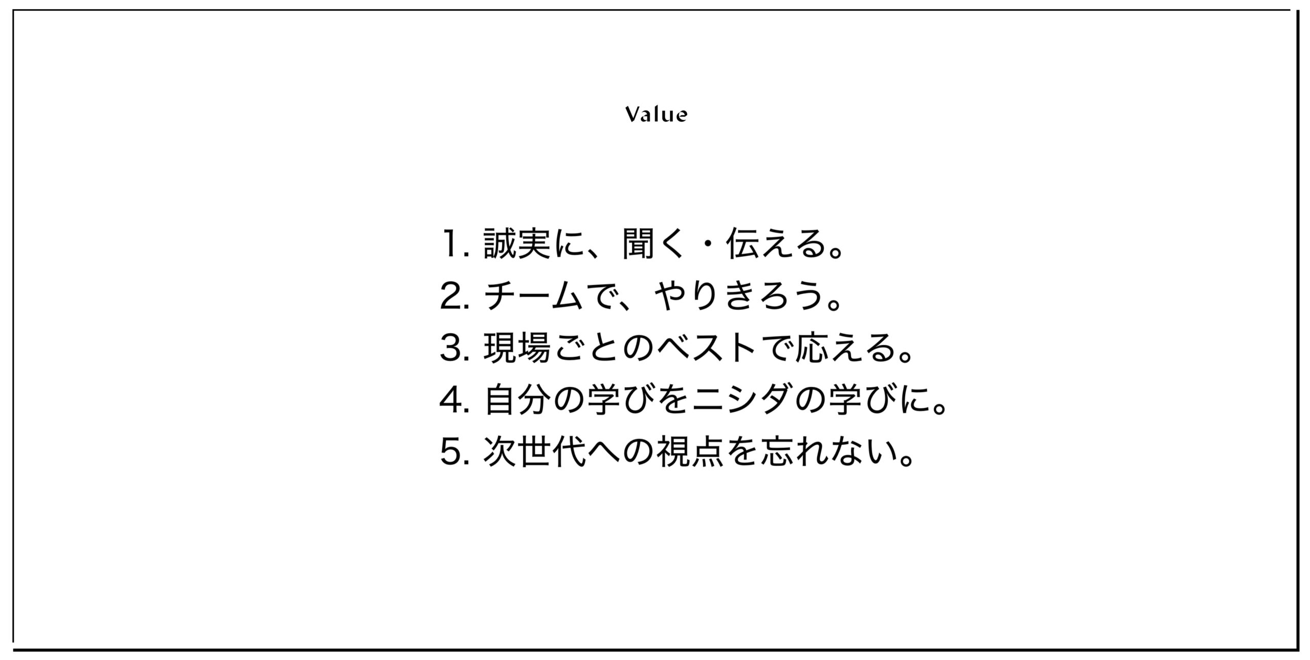 そこで理念策定にあたって立てた方針は、まず現場社員が理念を行動に移しやすいように抽象的な言葉に寄り過ぎないこと。そして、自社だけでなく業界全体がめざす未来を示す言葉として整理することを定めた。