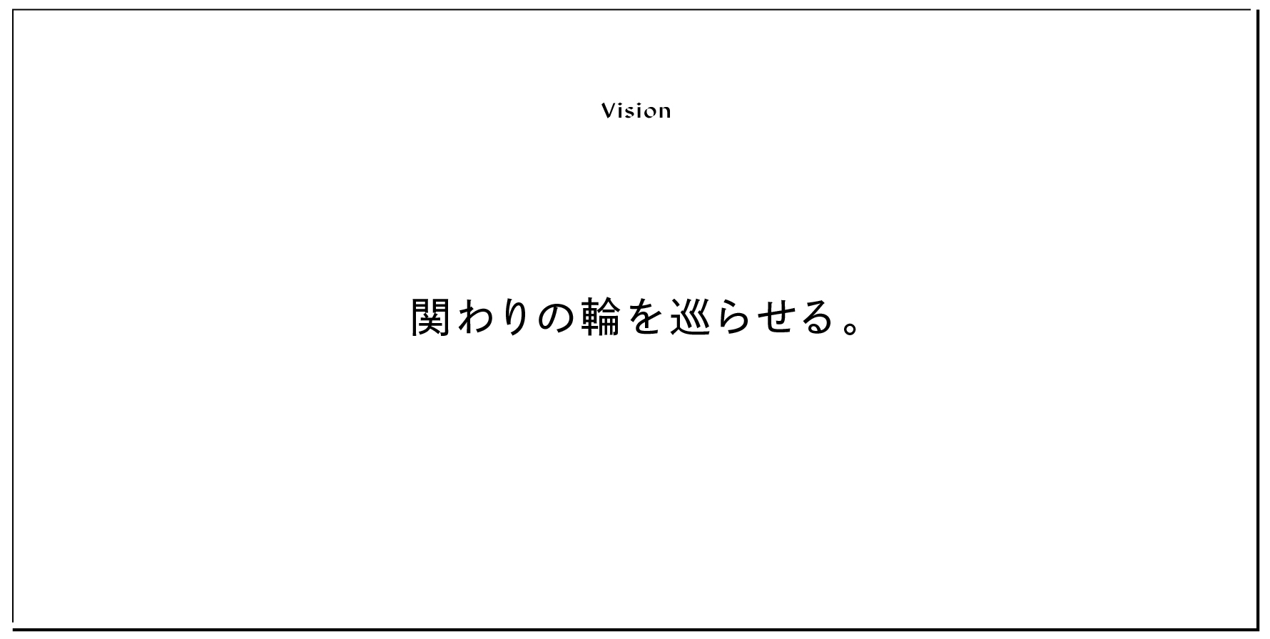 代表の幼少期から取材し、価値観や考え方を取材。その内容をもとに理念の言語化からロゴ制作、ツールの整備、定例での伴走まで、一貫してブランディングを推進。代表の意志を起点に全体設計を行い、社員・家族・お客様・地域など関わる全ての人々との「関わりの輪を巡らせる」企業理念を可視化。社内外の認識統一とブランドの自走を目指す。